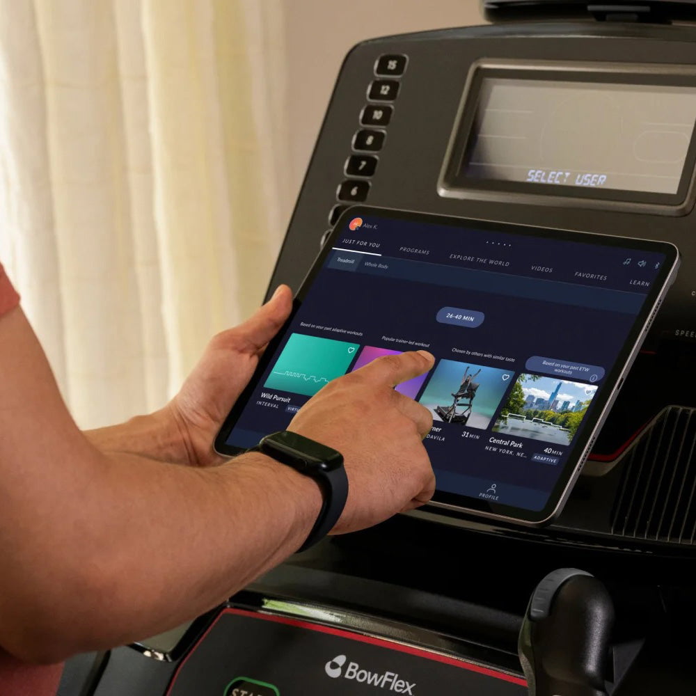 Push your performance with the BowFlex T9 Treadmill, engineered for serious runners and fitness enthusiasts who crave seamless connectivity, incline-driven challenge, and intelligent design. Featuring a high-contrast 7” LCD console, FlexZone XL cushioning, and compatibility with JRNY®, Zwift®, Kinomap, Apple Watch and Galaxy Watch, the T9 transforms every run into a fully immersive training experience.
