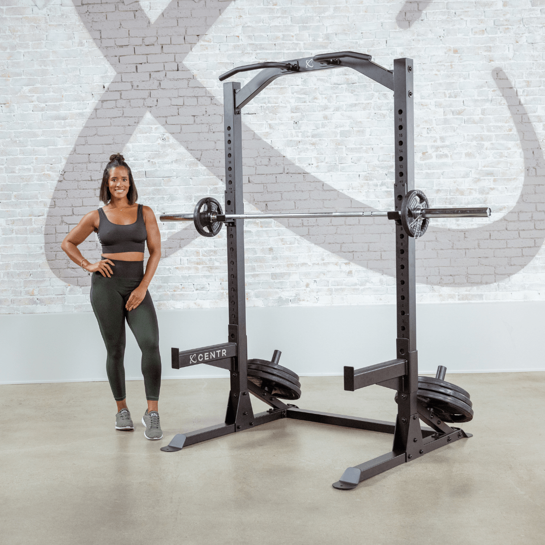 Take your home strength training to the next level with the Centr Half Rack. Built for safety and performance, this heavy-duty rack features 16 vertical safety rail positions, dual weight storage horns, and a maximum user weight of 159 kg (350 lbs). Whether you're squatting, pressing, or performing pull-ups, it’s the perfect foundation for your home gym, complete with a complimentary 3-month Centr Digital Membership to enhance your workouts.
