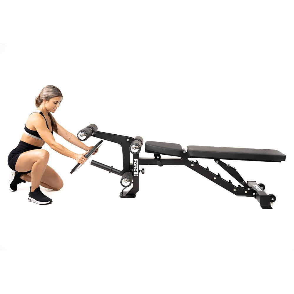 Complete your MyRack with the updated FID Bench from Force USA, featuring a stronger, more durable design while being lighter than the previous model. This is the perfect piece of equipment to boost performance with the Leg Developer and up your arm game with the Preacher Curl. Hit those strength and fitness goals sooner by adding this versatile bench to your set-up!
