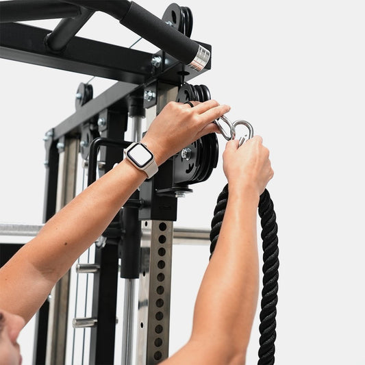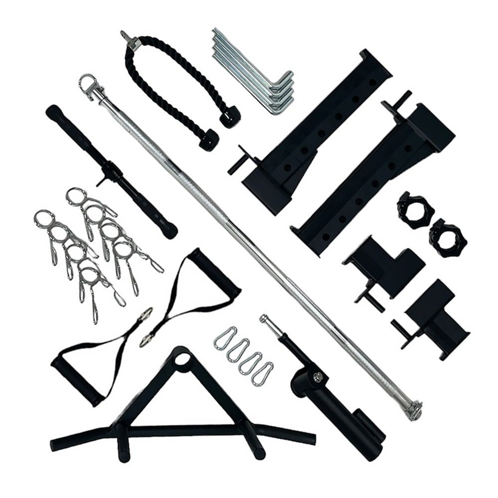 Force USA has made sure to add a wide variety of training aids so every session is different. Tough commercial quality cable attachments include a Long Straight Bar, Short Straight Bar, Nylon Handles, Tricep Rope, A Bar Row Handle, Landmine Core Trainer and more!