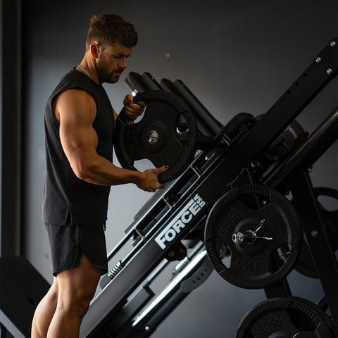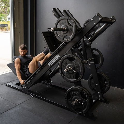 The latest Leg Press Squat Hack has the Force USA DNA all over it! This newly updated machine has a host of features that your members will enjoy, including: