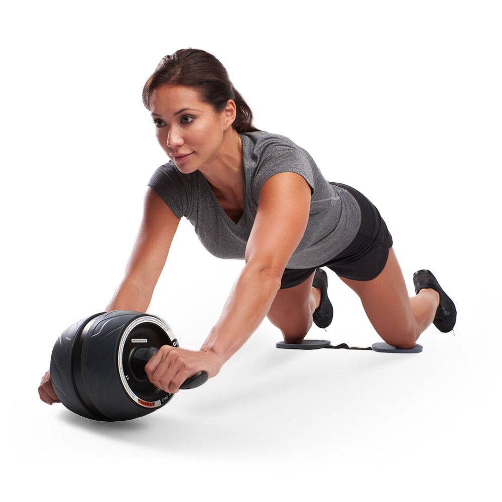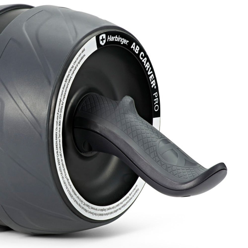 The Harbinger Ab Carver Pro is an ab wheel with a patented design that improves the effectiveness of ab exercises and helps to engage and strengthen muscles in the back, chest, arms, and core. Unlike traditional ab wheels, the Ab Carver Pro uses a unique carbon steel spring mechanism that provides resistance as users roll out and assistance as they roll back, engaging muscles more thoroughly. While most ab rollers feature flat wheels that only allow for rolling straight out and back, the Ab Carver Pro features a wide, spherical wheel that helps users engage all ab muscles, including obliques, by pivoting to the right and left. This helps to strengthen deep core muscles that stabilise the pelvis and spine. The Ab Carver Pro also features padded, angled, ergonomic handgrips that maximise engagement of arm muscles while remaining comfortable and stable.