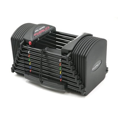 Help take your strength and fitness to a new level with the world’s most compact, user-friendly dumbbell set. The unique design of the sleek PowerBlock Pro 50 lets users safely move between 4.5kg-22.7kg (5lbs-50lbs) of weight on each hand, with colour coding for easy identification. Extremely comfortable, perfectly balanced and equivalent to 9 pairs of traditional dumbbells. Optional upgrades for the Pro 50 includes the PowerMax Stand, Pro Straight and EZ Curl Bar and Kettlebell handles.