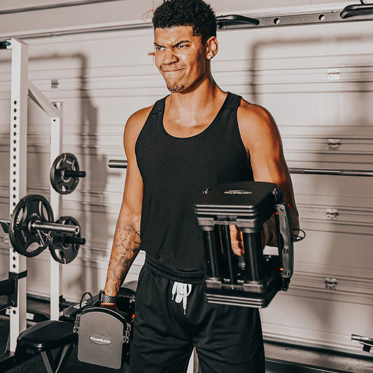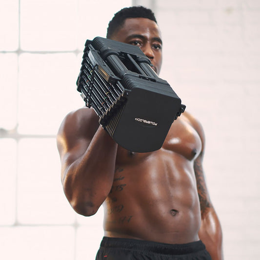 The PowerBlock Pro 50’s open-designed handle makes it a great fit for any hand size, with easy accessibility and a comfortable contoured rubber grip. The ergonomic design ensures every selected weight is well balanced and safe to use, which makes it the ideal choice for both stationary arm exercises and HIIT workouts.