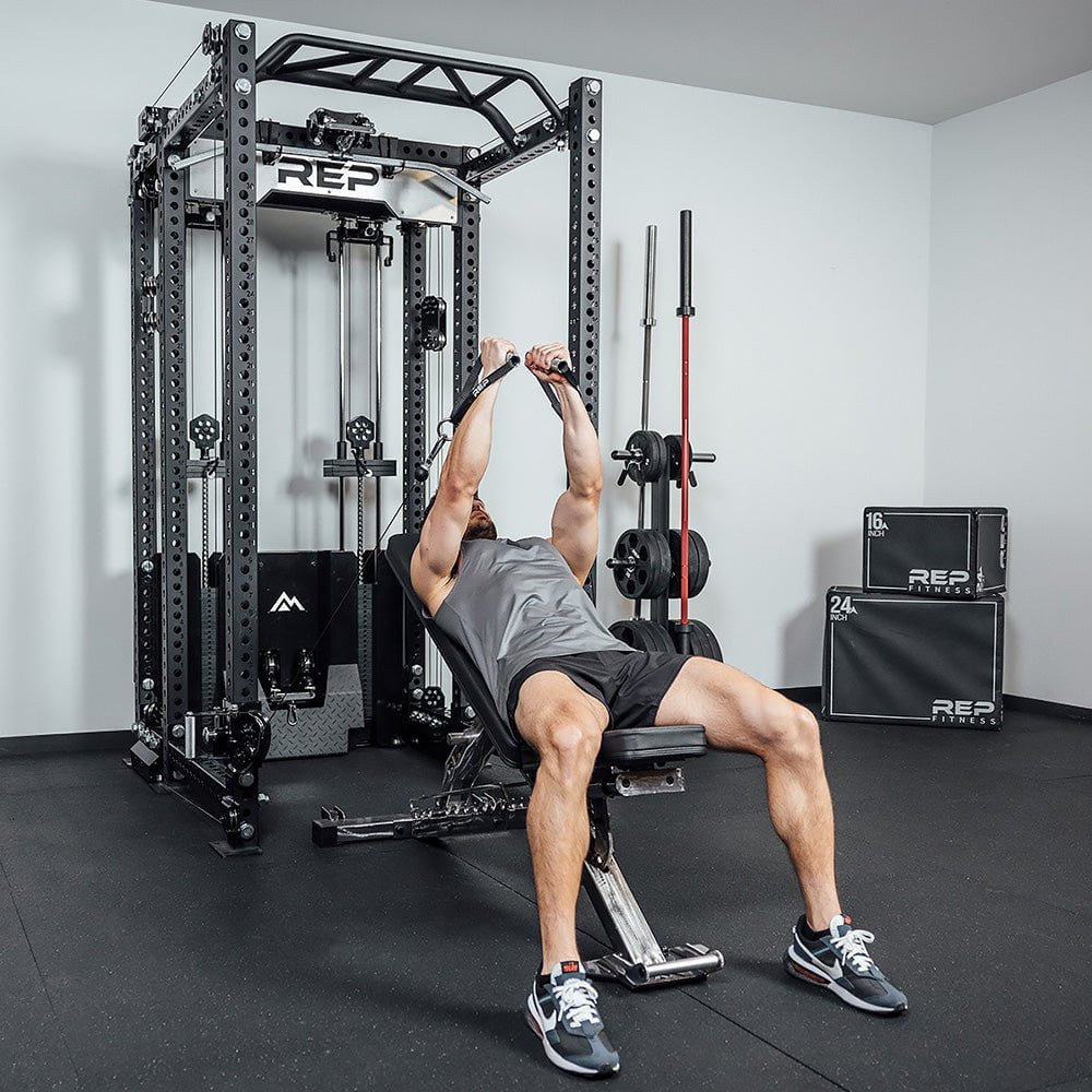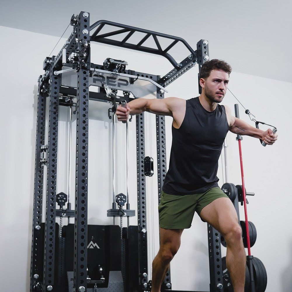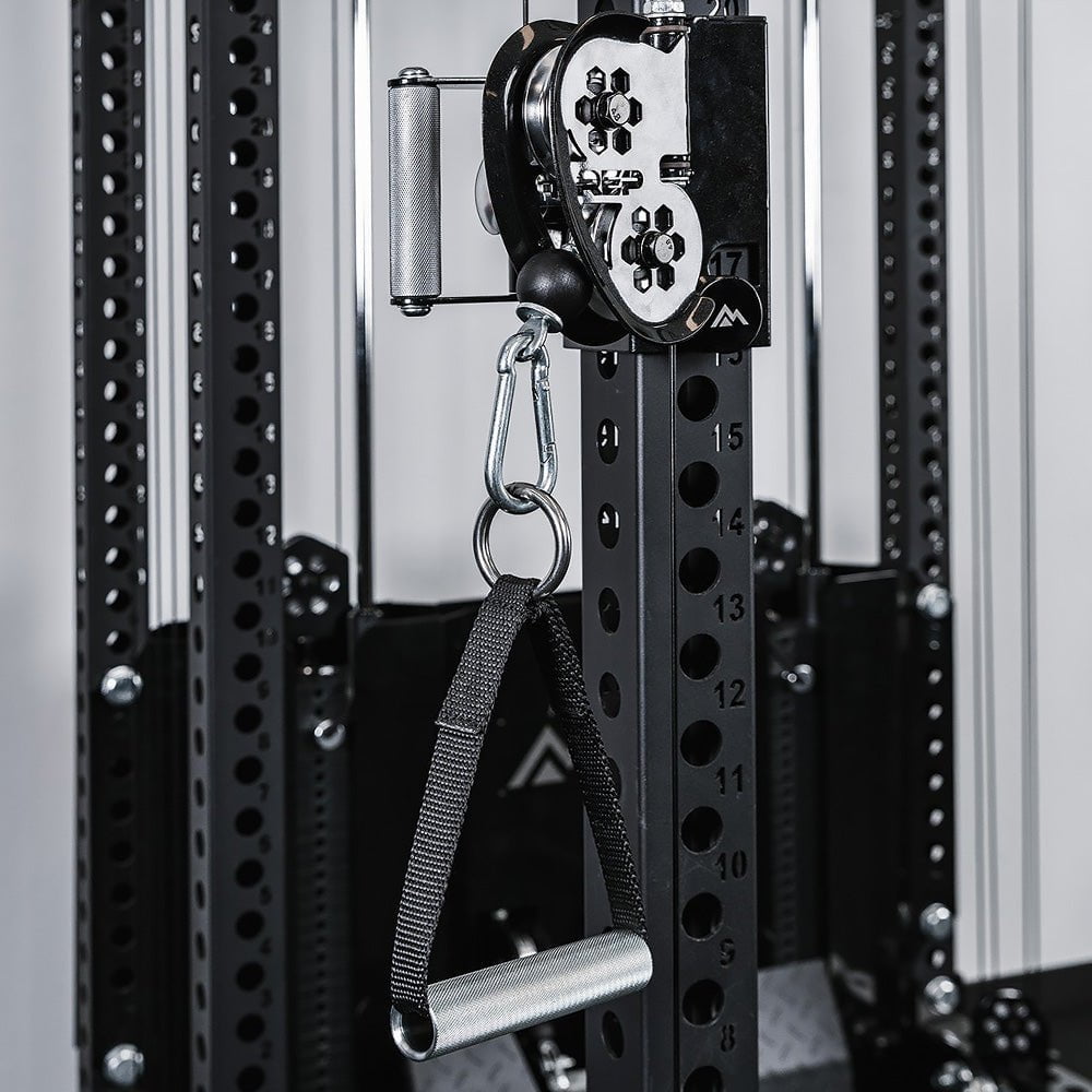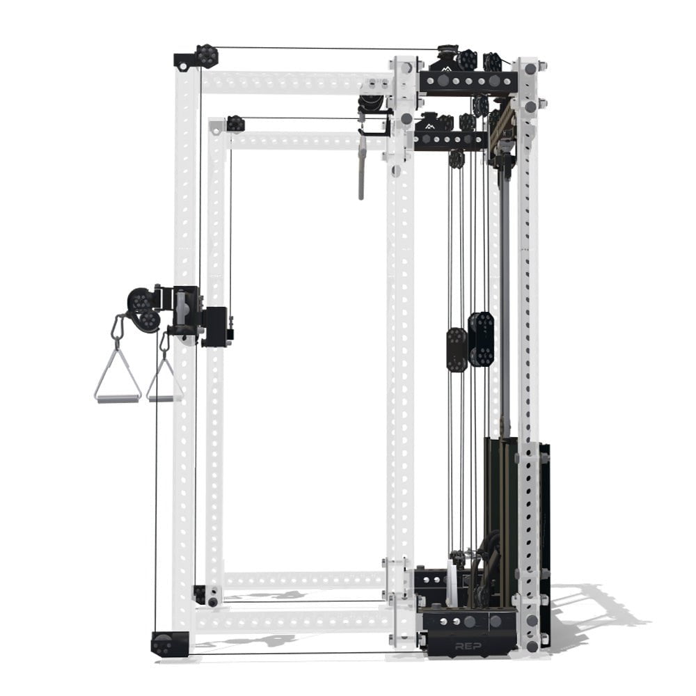 SEAMLESS POWER RACK INTEGRATIONDesigned for seamless integration with REP’s PR-5000 power racks, the Ares 2.0 transforms your setup into a compact, all-in-one training system. Its lightweight yet durable trolleys feature a knurled handle and oversized pop-pin for quick, one-handed adjustments. Combined with the integrated lat pulldown and seated row, the Ares 2.0 delivers a full functional trainer experience—without taking up extra space. |