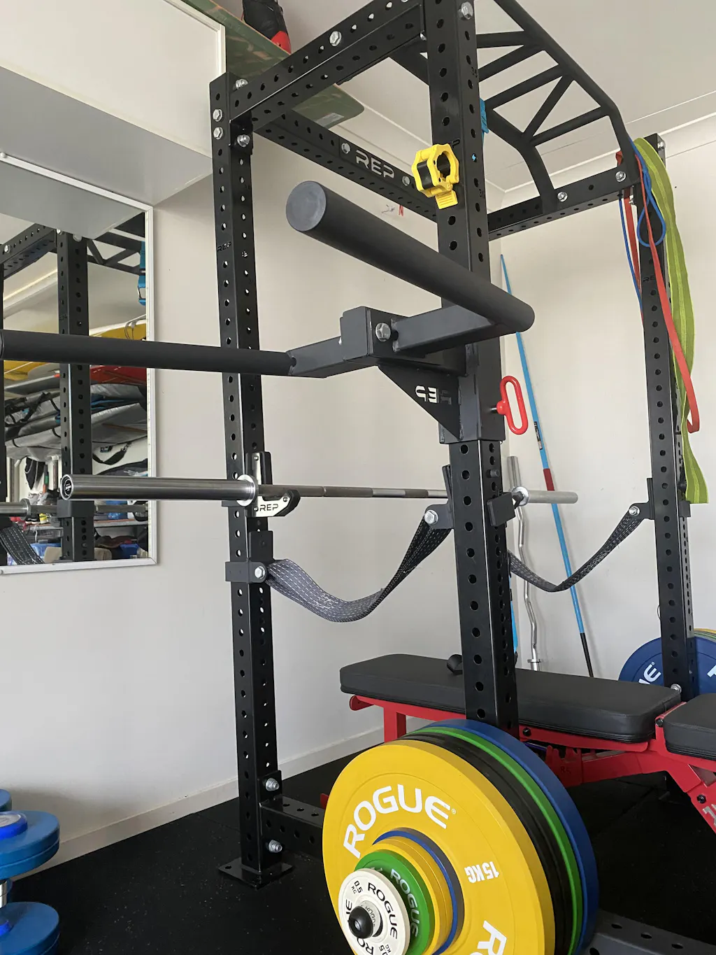 This Christmas, Santa placed a REP Fitness Dip PR-4000 attachment under my Christmas tree. It looks and feels great. The build is awesome, commercial quality and locks firmly into my Rep Fitness PR4000 rack. I’m 65kg and the dip bar is nice and stable through out my workouts. I have a very small 2.5m x 5.0m area for my gym equipment and this piece of kit takes up very little space and enables me to do so many more exercises. My chest, triceps and abs are loving it.