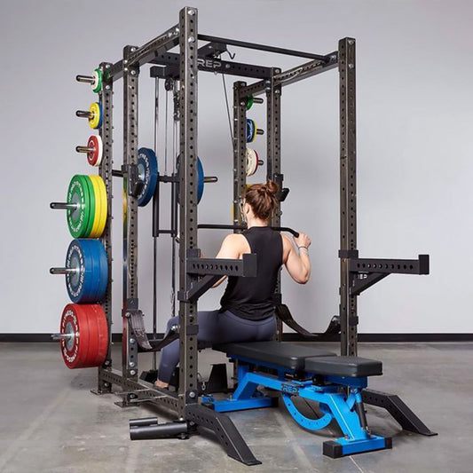 Build out your PR-4000 with the Lat Pulldown and Low Row Attachment. This pulley system easily attaches to your power rack to add cable exercises, including lat pull-down variations and seated rows. The system features a 1:1 ratio - which means a 10-pound weight will produce 10 pounds of actual resistance. The attachment comes with a handy Lat Bar and Straight Bar, as well as a Foot Plate to brace against during low rows.