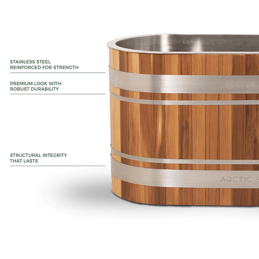 For added durability and peace of mind, the Glacier Solo is fitted with a sleek stainless steel hoop that reinforces the cedar frame. This extra layer of support enhances structural integrity while seamlessly blending into the overall design. It’s tough, reliable, and built to endure both time and the elements.